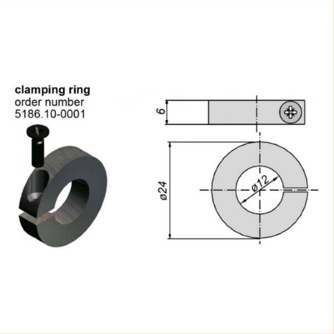 De klemring is gemaakt van zwart synthetisch materiaal, voor een as met een diameter van 12 mm. U heeft 2 klemringen nodig om de krukas te bevestigen op de zwengelhouder. De bevestigingsmoer wordt meegeleverd.
